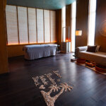 I was particularly impressed by the unique architecture of the circular Ritz-Carlton spa, which is built over the water. There is a round opening in the roof and floor right in the middle, so that sunlight falls on the lagoon and illuminates it. As soon as you enter, the spa area exudes a deep sense of tranquillity. You will find cozy treatment rooms for couples with lots of wooden elements. We enjoyed a relaxing couple’s massage here.